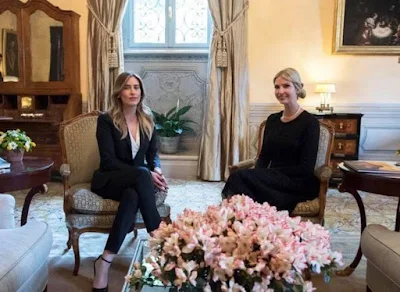 C'entra. Perché oltre al Papa, al Presidente della Repubblica, al Presidente del Consiglio, gli americani in visita, tramite la figlia Ivanka ha incontrato un'altra figura istituzionale, una smaniosa di visibilità nonché artefice della maggior debacle referendaria della nostra storia: la Bella Etruriana. Tanta era la voglia spasmodica ed incontrollata di emergere dalle sue scartoffie governative, che la nostra, anzi la loro, è andata a Villa Taverna, residenza dell'ambasciatore americano, per incontrare la figlia del presidente armigero, rompendo il protocollo che prevede invece l'opposto.