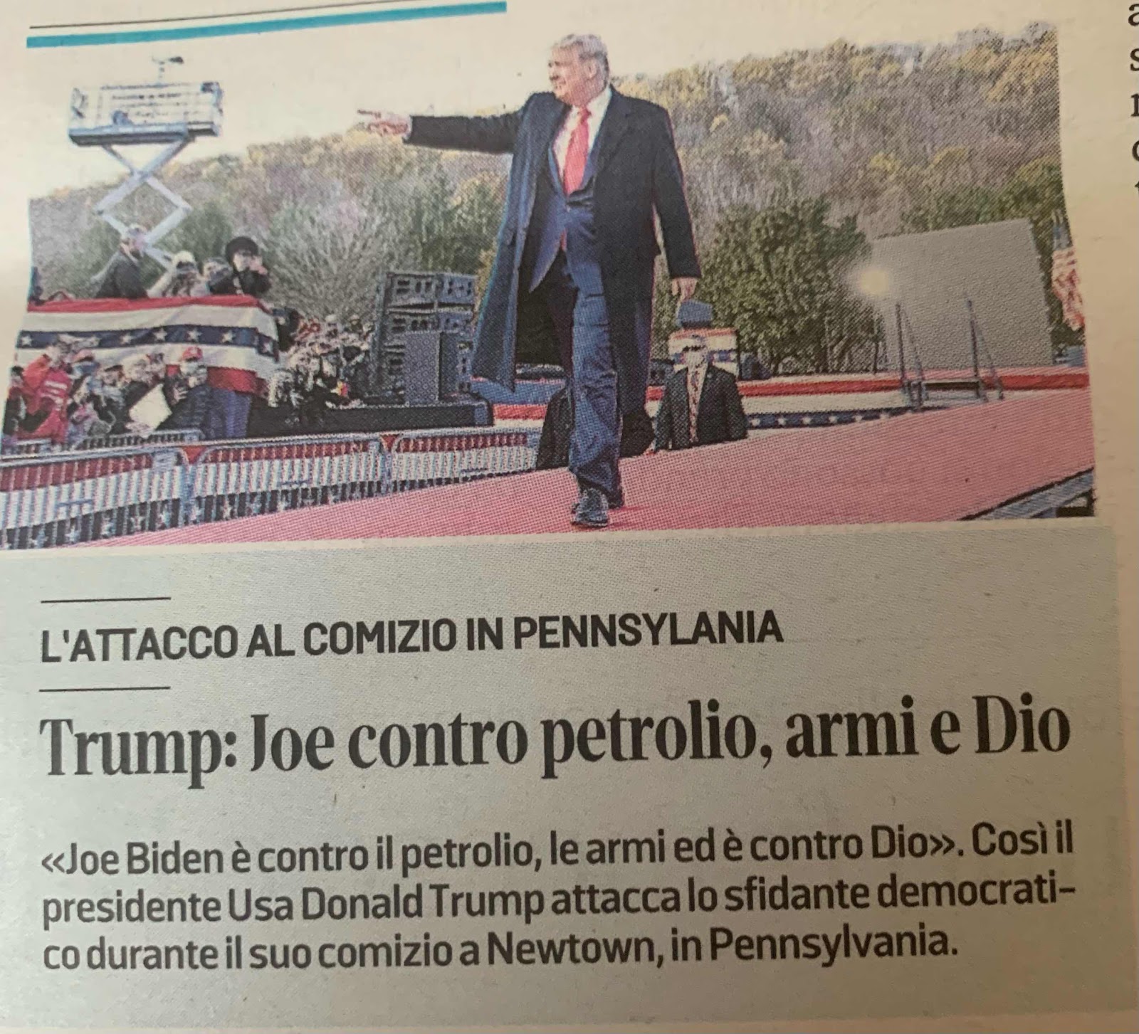 In pratica è come se dicesse “se mi votate ancora, vorrà dire che siete dei coglioni”, visto che l’altro - a proposito il partito democratico avrebbe potuto candidare un sarcofago visto la freschezza di Biden - non vuole il petrolio, le armi e dio - scritto minuscolo perché il biondastro crede sicuramente in una divinità autodistruggente visto come persegue il divario sociale, la violenza, il sopruso -