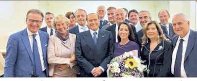 E allora partiamo da questa foto, festeggiante la nomina a capo gruppo in Senato di un'ex infermiera che in passato gli organizzava le famigerate cene eleganti: guardate i personaggi che sono stati normalizzati, la figlia di tale Cinghialone che ha razziato il paese per almeno un decennio - si però era un gran politico, non come quelli di oggi! -, l'ex presidente del Senato Vien Dal Mare che un tempo dalla Gruber confermò che il Silvio suo fosse veramente convinto che Mubarak avesse una nipote marocchina e, sempre lei, partecipò alla manifestazione contro il Pool di Mani Pulite sulle scalinate del tribunale di Milano, e poi Gasparri - e ho detto tutto - ed infine Lotito che sta alla decenza e al rispetto delle regole come il Pregiudicato alla nostra Costituzione.