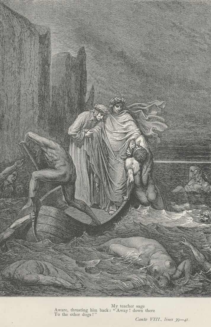 Intrapresi or dunque l’ausculto della Commedia del prode Alighieri… ehm.. si ho iniziato, estasiato, ad ascoltare la Divina Commedia e nel canto VIII dell’inferno ecco già comparire un prototipo di tutte le liti condominiali, Filippo Cavicciuoli, soprannominato Argenti perché aveva lo sfizio di ferrare il cavallo con ferri d’argento, che oggi lo possiamo equiparare agli Argenti che in baldanza, smargiassi ed epuloni, mostrano la loro tracotanza credendosi padroni della sfera; pare che l’Argenti parcheggiasse il cavallo davanti all’abitazione del suo vicino di casa, gli Alighieri, che andarono in causa con la famiglia degli Adimari. Continuarono le liti tra loro ed il poeta lo citò ad imperitura memoria nel poema, conficcandolo nella melma degli iracondi, confermando che l’opera sua è si Divina, ma anche occasione per togliersi sassolini dalla scarpa. E che sassolini! Tiè!