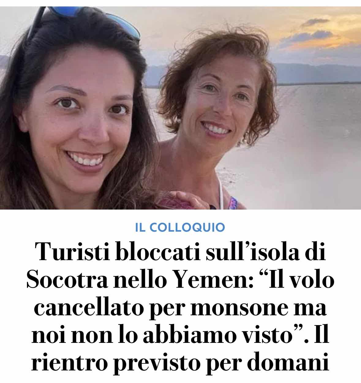 Basterebbe guardarle in faccia per comprendere la stratosferica idiozia che le ha spinte, assieme ad altri, ad organizzare una vacanza in Yemen, da un decennio dilaniato da una guerra violentissima e con carestia e povertà ai massimi livelli.