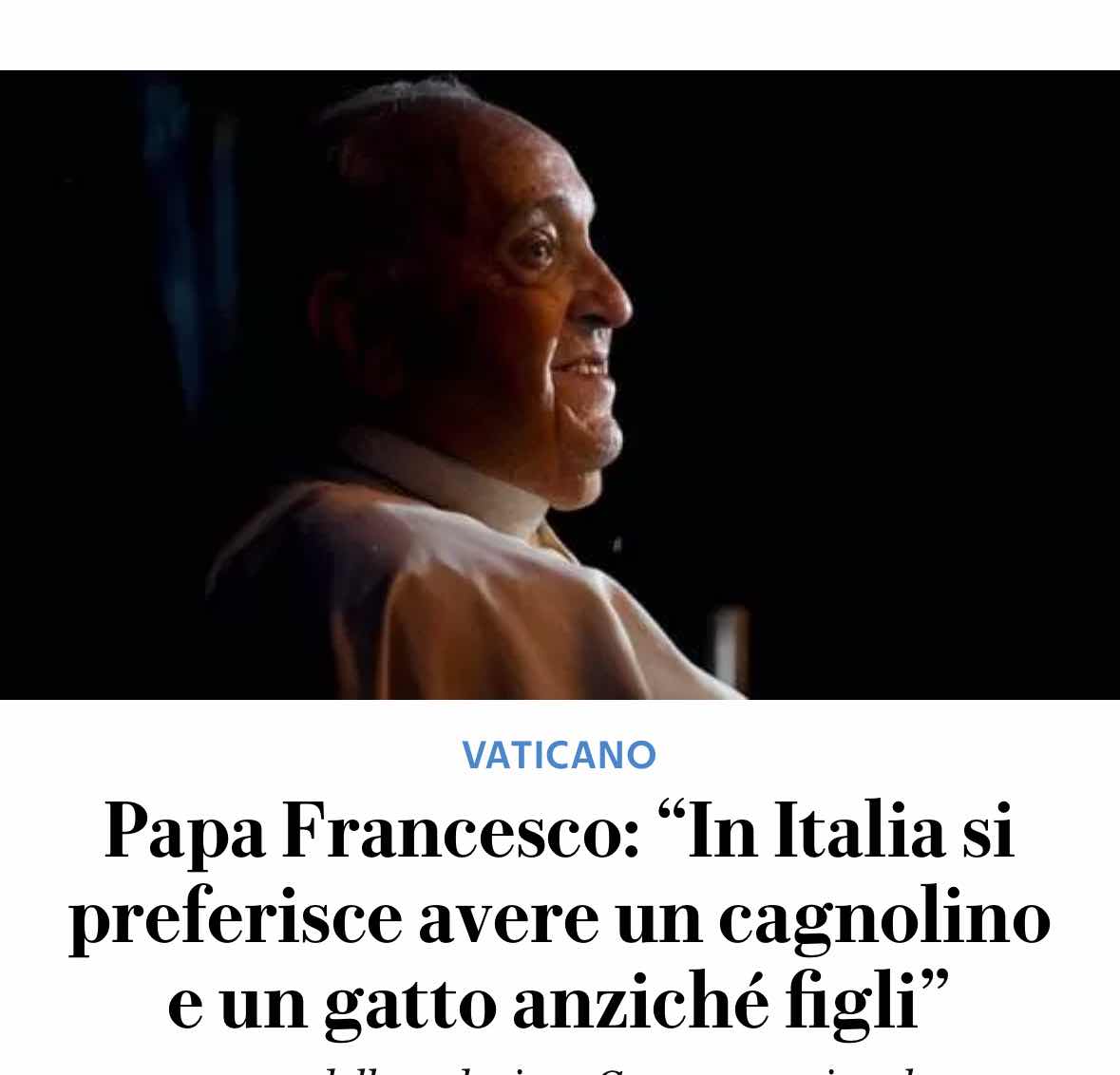 Scusi l’ardire Santità: possibile che sotto certi aspetti vi sia qualcosa di vero in quello che afferma; ma è anche verità, e Lei ne sono consapevole da tanto tempo lo combatte, che in Vaticano si preferisce vivere da soli con la servitù in appartamenti da centinaia di metri quadri anziché rimboccarsi le maniche ed uscire incontro alle innumerevoli situazioni estreme che attanagliano le nostre città. Non è chiaramente rivolto a Lei quanto detto, sappiamo bene infatti che ha lasciato il palazzo apostolico per vivere a Santa Marta! Ma attorno… non tutti…