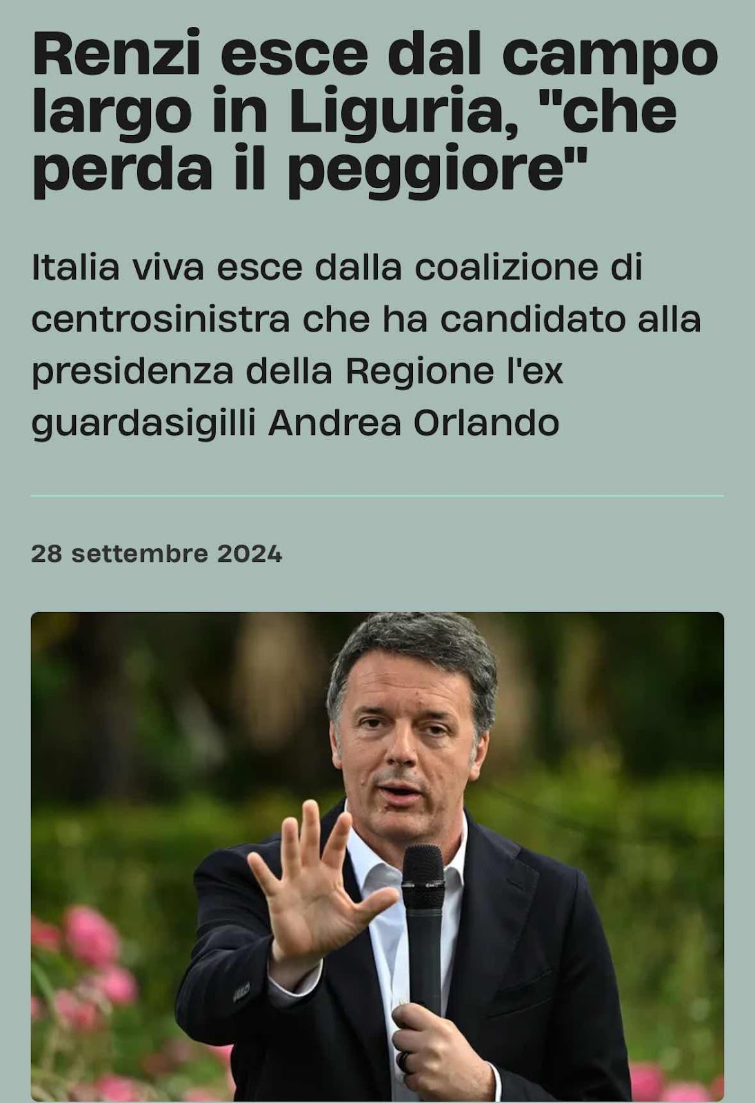 Che brutta notizia, ferale, scioccante! Perdiamo un simbolo, un vero politico, che parla inglese meglio di Hugh Grant, un coacervo di beltà, di fermezza, di politica seria mai controversa. Un esempio per tutti. Poco conta che la sua microscopica enclave stesse governando il comune di Genova retta da Bucci ora candidato del centro destra. Quisquilie!