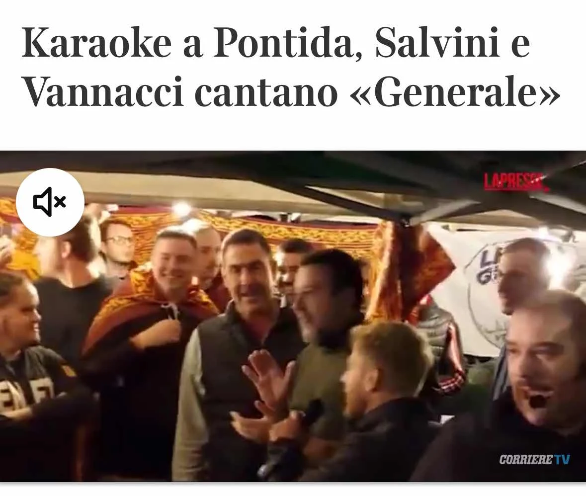 L’eclatante idiozia di quei due in quel di Pontida è riassunta nella scelta del brano per ossequiare lo scrittoredi’staceppa! Una delle poche sinapsi in funzione in quei meandri ha portato i diversamente cogitanti a cantare “Generale” di De Gregori, senza che nessuno, non potevano poveretti, pensasse al testo, a ciò che Francesco vuole dirci in questa magica canzone, tra l’altro oltraggiandola. Un po’ come se al tempo del loro “Zio” che salutava gli allocchi festanti qualcuno avesse intonato “Bella Ciao.”