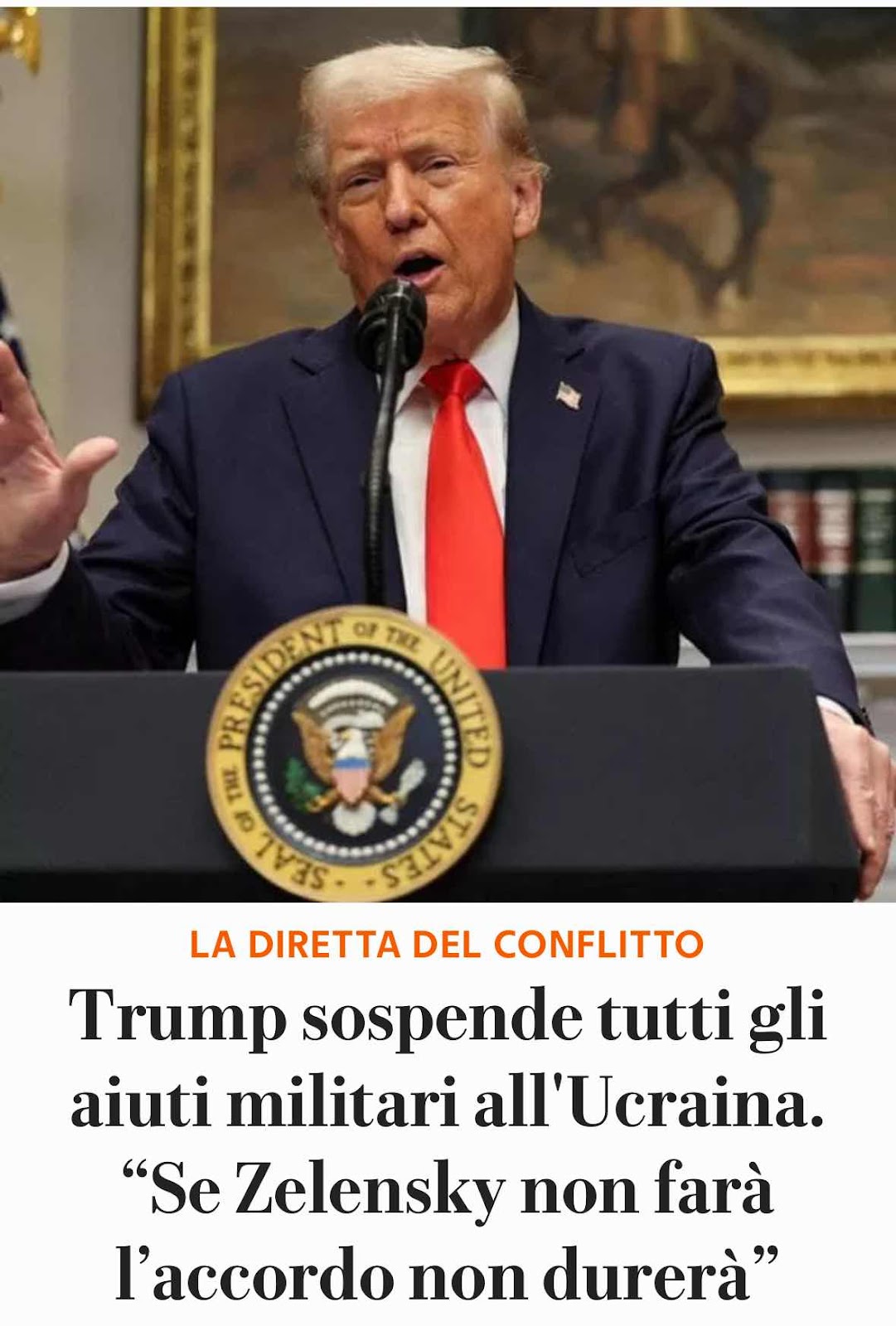 Se l’interesse generale, universale, è quello di far tacere le armi, di fermare la perdita di vite umane - due giorni fa droni russi hanno ucciso cadetti ucraini, giovani mandati al macello - se la ragione, le religioni, la filosofia c’insegnano che la guerra è merda, sempre e oltre ogni ragionevole dubbio, allora anche uno psicopatico di tale stazza può contribuire al suo raggiungimento. Non m’interessano tavoli, riunioni, incontri, strategie, arzigogoli, balordi, commentatori, peripatetici, pennivendoli e quant’altro. Sono totalmente orientato sul francescanesimo più puro, la pace con ogni mezzo, il dissolvimento del bellicismo, l’evaporazione di tutte le multinazionali di morte, comprese le banche armate che lucrano sui cadaveri. Non mi avrete mai, non contate su di me ora che idioti a Bruxelles ci stanno spaventando per spendere miliardi in armamenti sottraendo risorse per il sociale. Sorgesse un fascista - son tranquillo perché è impossibile - che s’ergesse a paladino di quanto detto, lo appoggerei. E ora mi documenterò sulla possibilità che i miei soldi che destino al circo europeo dedito al malaffare bellico, non finiscano in opere di morte. Ci sarà qualche corte internazionale sana di mente che appoggi questa mia volontà? Non lo so. Ma mi sono rotto i coglioni di tutti questi soloni a pernacchia che paventano occupazioni e terrore. Non mi avrete. Ah dimenticavo: a culo tutto il resto (cit.)
