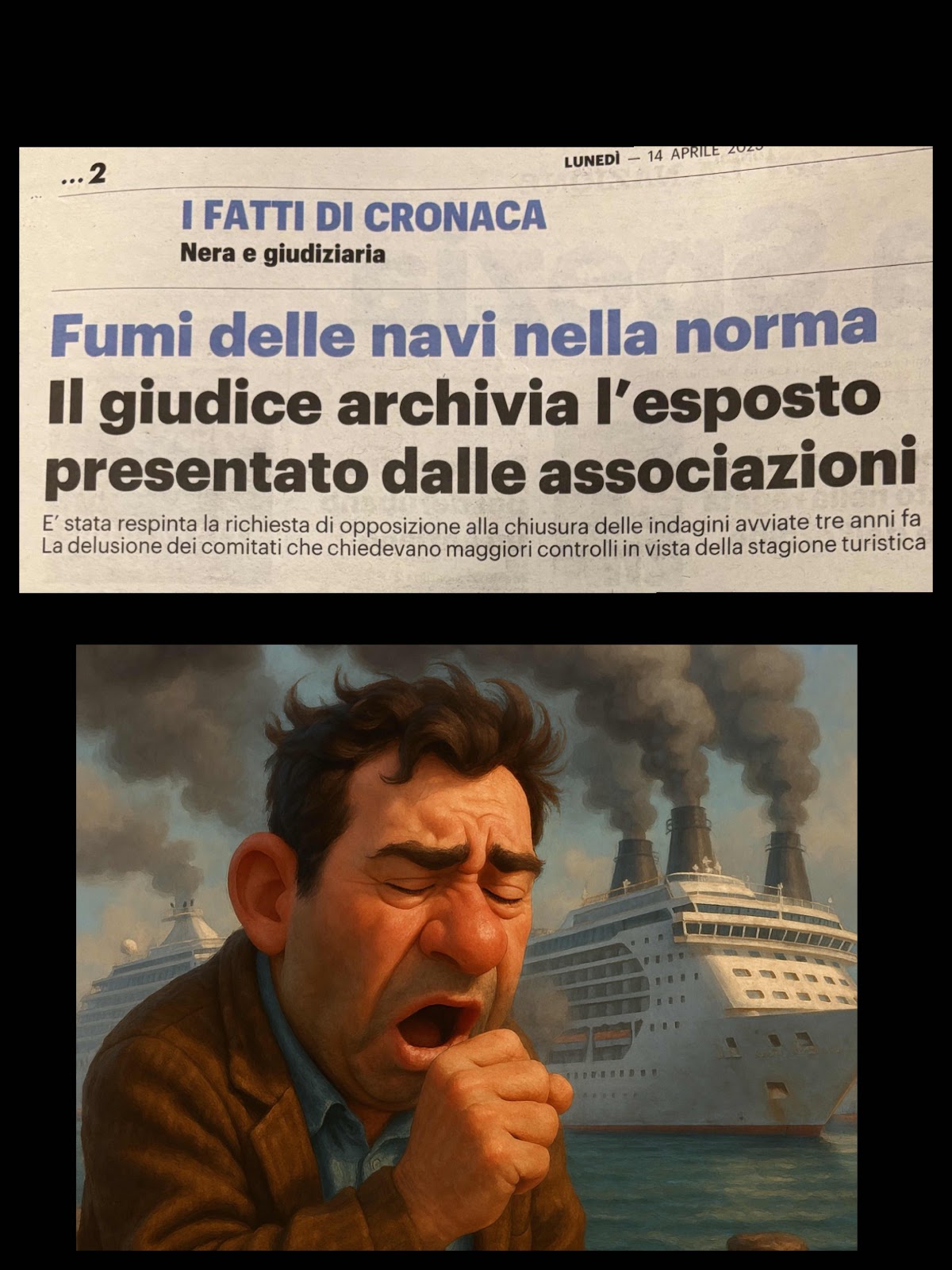 Mi scuso col giudice, probabilmente residente sulle alture spezzine; tutto nella norma, bene! W il turismo e le navi da crociera! E avanti con i suffumigi salutari!