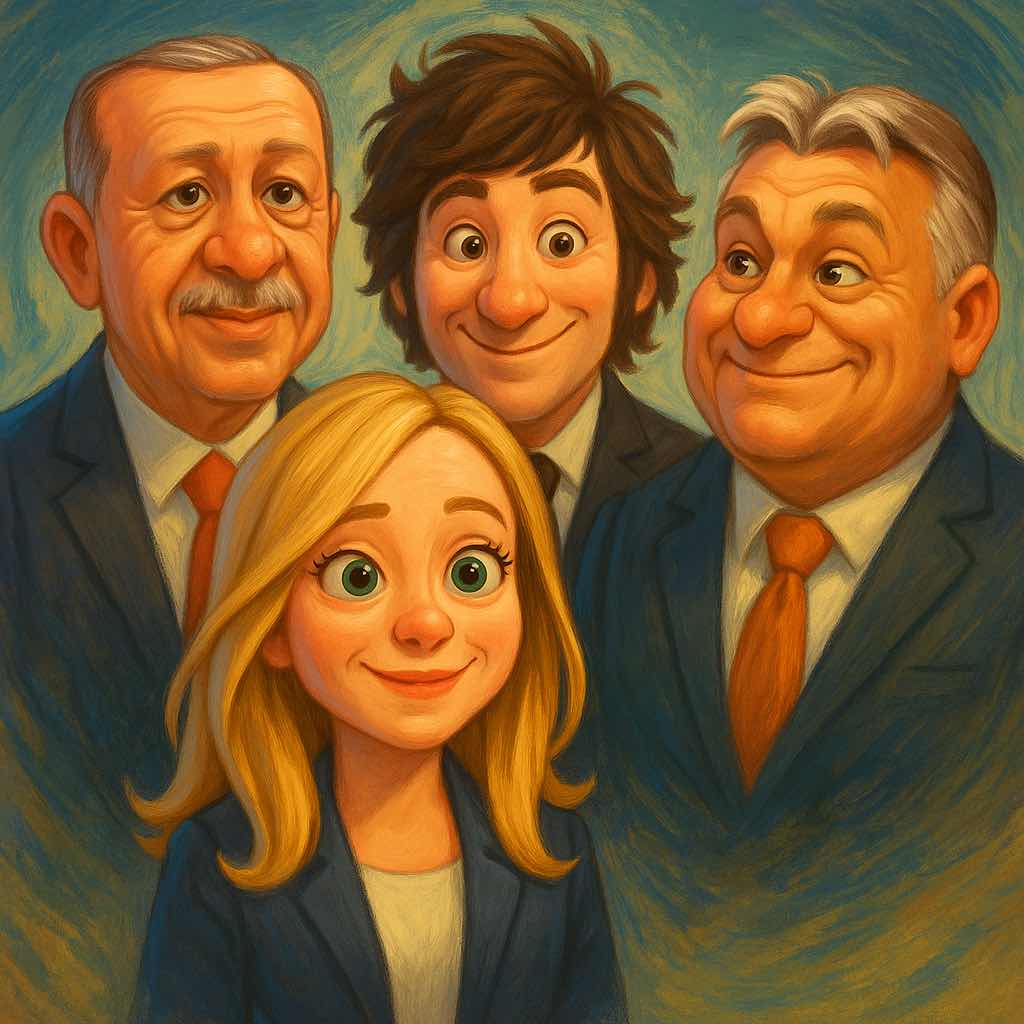 Gli ultimi tre incontri internazionali di Giorgia potrebbero far sorgere dubbi in merito alla sua politica, a meno che non sia iscritta a qualche concorso a punti tipo “più feccia più bonus”: il turco dittatore che si tramuta a seconda degli eventi in saggio pacificatore, difensore dei confini altrui (a pagamento) mentre opprime le opposizioni e tenta di estirpare curdi dalla faccia del pianeta, in modalità Bibi il Genocida; Orban e qui basterebbe la parola assieme al perché la cosiddetta Europa non l’abbia ancora cacciato a calci per il culo; ed infine il must degli psicolabili, l’argentino con motosega che insultò a suo tempo Papa Francesco! Bel terzetto non c’è che dire! Peccato siano solo cartoni Macchia Nera e Diabolik, e Randle Patrick McMurphy sia solo nella celluloide, altrimenti…