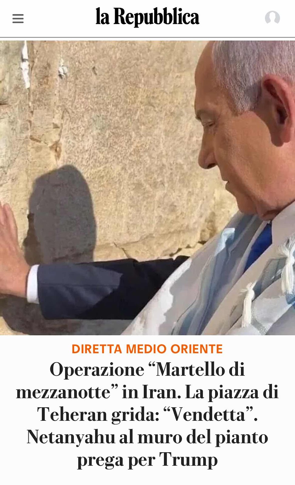 Chissà perché, ma quando leggo di queste idiozie - un genocida che prega per uno psicopatico - m’immagino, con tutto il rispetto, quanto sarebbe meraviglioso che si udisse in ogni luogo, in tutte le lingue, un poderoso, fragoroso, stereofonico, sussultorio “ma vai a cagare idiota!”